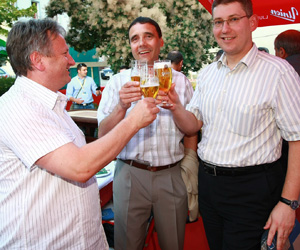 Na zdravje: predsednik uprave Pivovarne Laško Dušan Zorko, predsednik nadzornega sveta Mercatorja Robert Šega in predsednik uprave Mercatorja Žiga Debeljak.