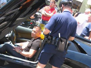 Rok Furlan v Lamborghiniju sredi Prešernovega trga.