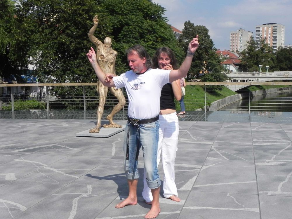 ... kjer sta se bodoča zakonca po novem Mesarskem mostu sprehajala bosa ... (foto: Denis Papič)