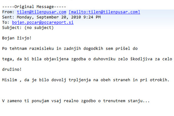 ... in faksimile sporočila, ki ga Pusar je 20. septembra poslal Bojanu Požarju, dva meseca kasneje pa vse izblebetal reviji Story.