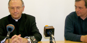 ... na tiskovni konferenci skupaj z ljubljanskim nadškofom in metropolitom Antonom Stresom.