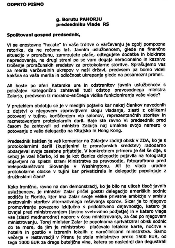 To je faksimile Odprtega pisma javnih uslužbencev predsedniku Pahorju (1. del ... 2. del v rubriki Galerija fotografij). Za povečavo klikni na sliko.