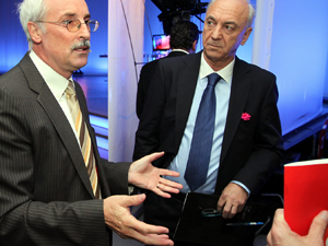 Za tokratno soočenje na RTS je Janez Ujčič (desno) izbral mariborskega založnika in urednika revije Kapital Srečka Pirtovška.