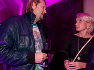 Simona Dimic in Miki Vlahovič, član glasbene skupine Victory, na Pinkovem sprejemu sredi Magistrata.