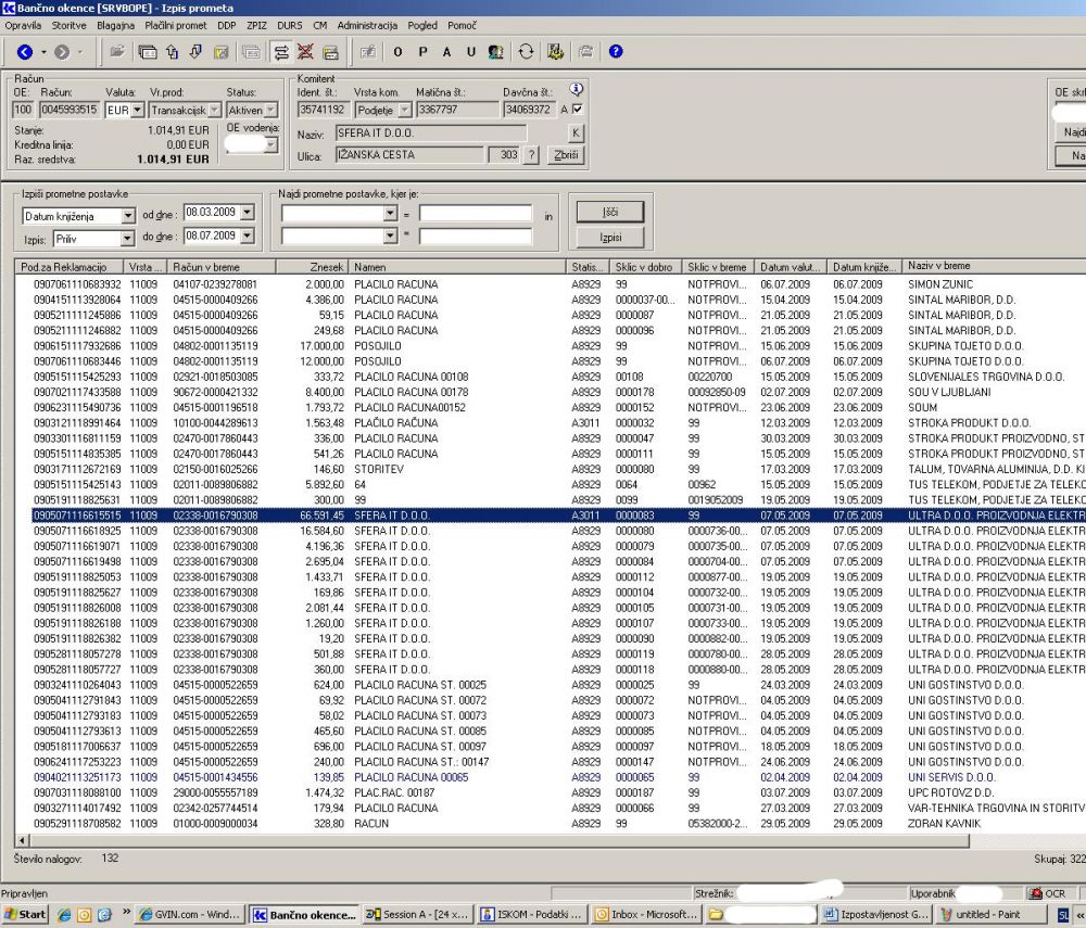 Bančne transakcije podjetja Sfeta IT dokazujejo dobro sodelovanje z Ultro in Margenta Storitvami (za povečavo klikni na sliko) ...