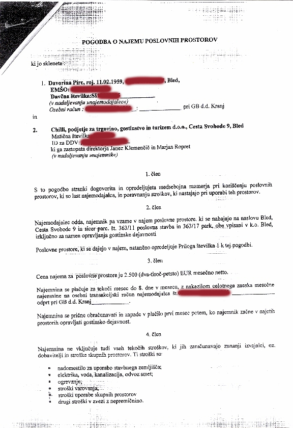 To je sporna pogodba o najemu poslovnih prostorov med župansko kandidatko LDS Davorino Pirc in podjetjem Chilli d.o.o.