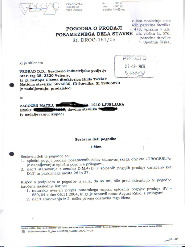 Pogodba med Vegradom in Matejem Zagožnom.