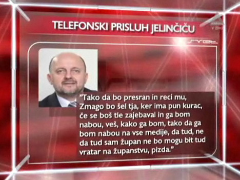 Sploh se ne čudim ,da politika lahko počne z nami kar se ji zazdi.Smo naivni in vsebe zaverovani ,da nam nihče nič nemore!Pa kaj če je Jelinčič v jezi zinil nekaj nespodobnega in tudi koga poslal tja kjer ne more čeprav bi si marsikdo tja želel(tam je nabolj varno).Kdo pa že ni v jezi rekel kakšno bedarijo čeprav je tako mslil ,vendar bi lahko to lepo zavil v celofan?Skbi naj nas kako lahko vsem prišluškujejo .Danes Jelinčič jutri vi!Veslo pisankO!!!