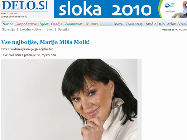 Včeraj je v reviji Lady izšel velik članek, ki se na dolgo in široko prilizuje Mariji Miši Molk. Podpisal pa ga je Tomaž Mihelič, znani "sestrak". Skupina "Sestre" je zmagala leta 2002 na Emi z žegnom Miše Molk. Sedaj ji Mihelič vrača uslugo. Kakorkoli že, spet en sluzav PIAR članek.